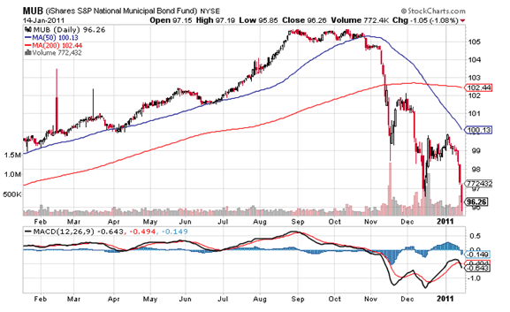 Desde hace un tiempo, los mercados de bonos están nerviosos y particularmente los bonos municipales que, debido a la situación de insolvencia e incapacidad de ingresar por encima de sus gastos de multitud de emisores, desde el pasado verano han caído precipitadamente pero de manera especial durante la pasada semana, cuando se han conseguido nuevos mínimos.