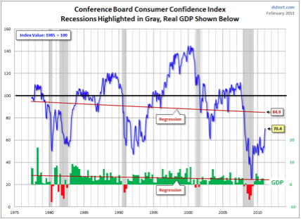 Mientras, la FED pretende incidir en la confianza y lentamente va progresando el intento, pero no de manera suficiente ni complaciente. El nivel actual de confianza del consumidor está en mínimos de los últimos casi 40 años, vean,