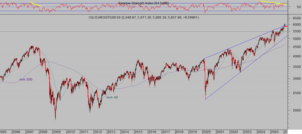 Las bolsas europeas siguen la estela de las americanas y cotizan también en zona de máximos históricos, presentando ciertas similitudes en los desarrollos técnicos y configuración de pautas, también en las implicaciones.