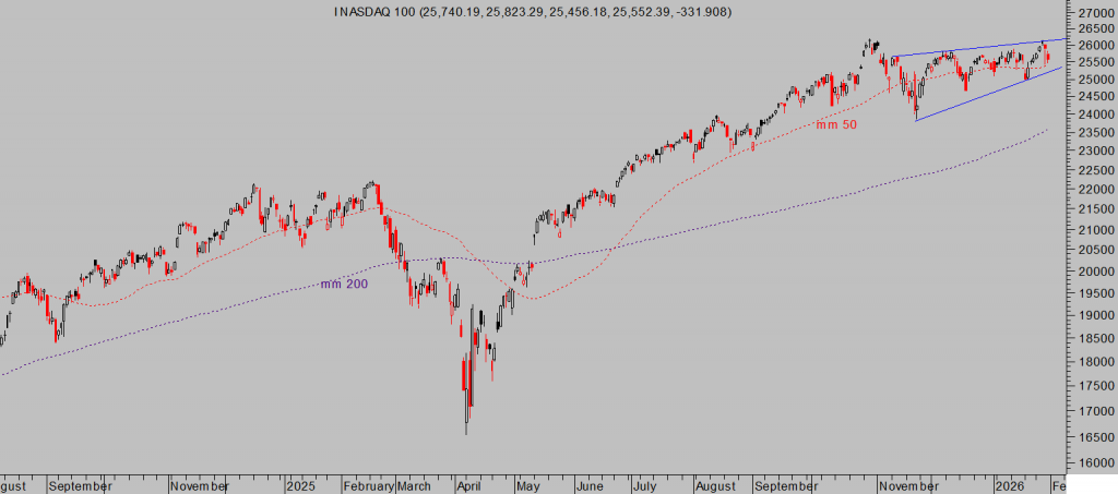 La dura toma de beneficios tiene a Warsh como referente y también a que se suman las voces sobre la incertidumbre que generan las inversiones en IA y que pueden terminar decepcionando ampliamente las expectativas de rentabilidad así como enfriando las salidas a bolsa de laas mega OPAs previstas para próximos meses de Anthropic, xIA, Open IA.