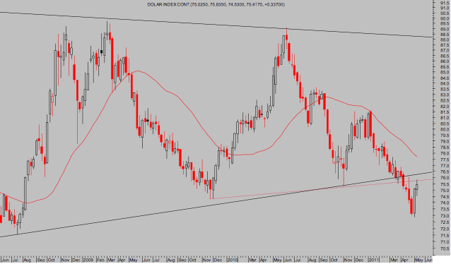 Se ha producido un significativo cambio de aspecto en los mercados financieros desde que el pasado día 4 de mayo el Dólar registrara suelo y posterior giro en su tendencia. La elevada correlación del dólar con el resto de activos, especialmente materias primas y bolsa, ha contagiado debilidad a ambos.