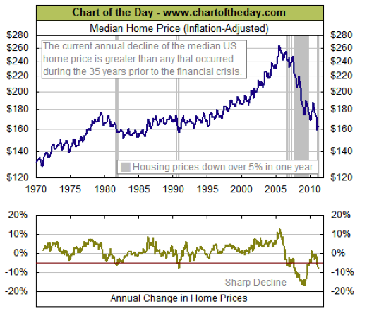 Los datos de evolución del sector inmobiliario persisten en mostrar una negativa evolución dentro de un ciclo no terminado aún. Los datos de venta de viviendas e inicio de nuevas en abril han sido excepcionalmente malos. El índice de sentimiento del sector construcción tiene un punto neutro en 50, que distingue entre expansión y contracción, cuando en abril se alcanzó el nivel 16. Es normal cuando se estima que existen 3.5 millones de casas en el mercado y otros 1.8 millones en proceso de ejecución y / o de impago.