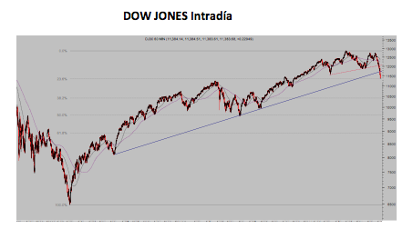 El DOW JONES ha corregido en pocas sesiones el 23,6% de toda la subida iniciada en marzo de 2009. SI pierde niveles, la siguiente referencia Fibonacci -38.2%- se encuentra en las inmediaciones de los 10.400 puntos.