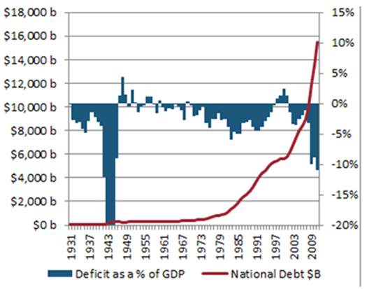 Vean a continuación la situación real de la evolución de la deuda y déficit en USA.