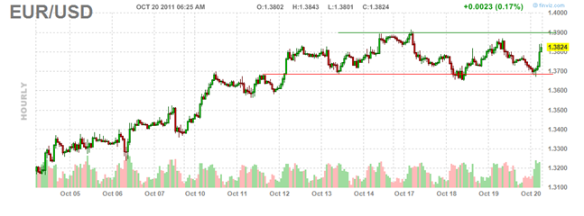 El Dólar podría ofrecer algún apoyo a los mercados de acciones, durante las pasadas siete sesiones viene dibujando un rango lateral contra al Euro entre los niveles 1.3700 – 1.3900, excepto una breve ruptura por debajo rápidamente recuperada, y en tanto no se rompa claramente a la baja las bolsas podrían encontrar cierto alivio.