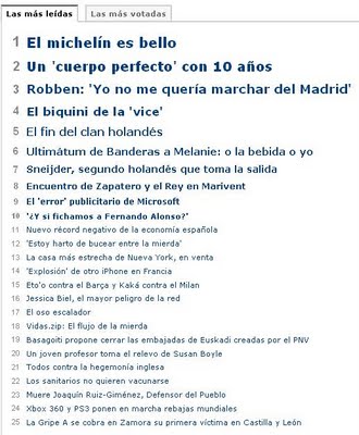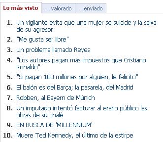Pues las noticias mas leidas las elije el lector, la tele la elije la cadena para agradar al maximo numero de personas, curiosamente muchisima gente se queja de que la tele es una mierda, pero me parece que encaja perfectamente con las noticias mas leidas...