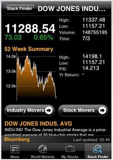 En App Store se puede descargar, de manera gratuita, una aplicación de Bloomberg, que además de resultar sencilla de manejar, proporciona gráficos e información de los indices americanos en tiempo real y las acciones en diferido. Además, se puede configurar "My stocks" y consultar noticias relacionadas con el mercado financiero.