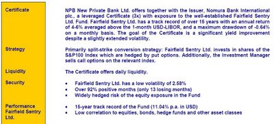 Este es parte del folleto de comercialización de un certificado emitido sobre el fondo Fairfield Sentry Ltd. que gestionaba Madoff, con un retabilidad del 11,04% anual.