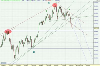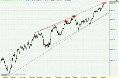 Como comenté en el foro, la pasada semana, la línea que une los máximos me parecía una resistencia creciente importante y había actuado de freno en las últimas subidas.