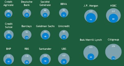 Interesante gráfico interactivo de la capitalización bursátil de los grandes bancos. Se puede observar el gran cambio que se ha producido en el sector bancario desde 1999 y sobre todo desde 2007, con la gran crisis financiera que vivimos.