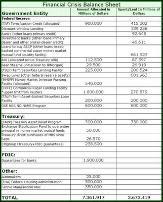 El coste de la crisis financiera alcanza ya los 7,36 Billones de dólares, $7.36 trillion dollars.