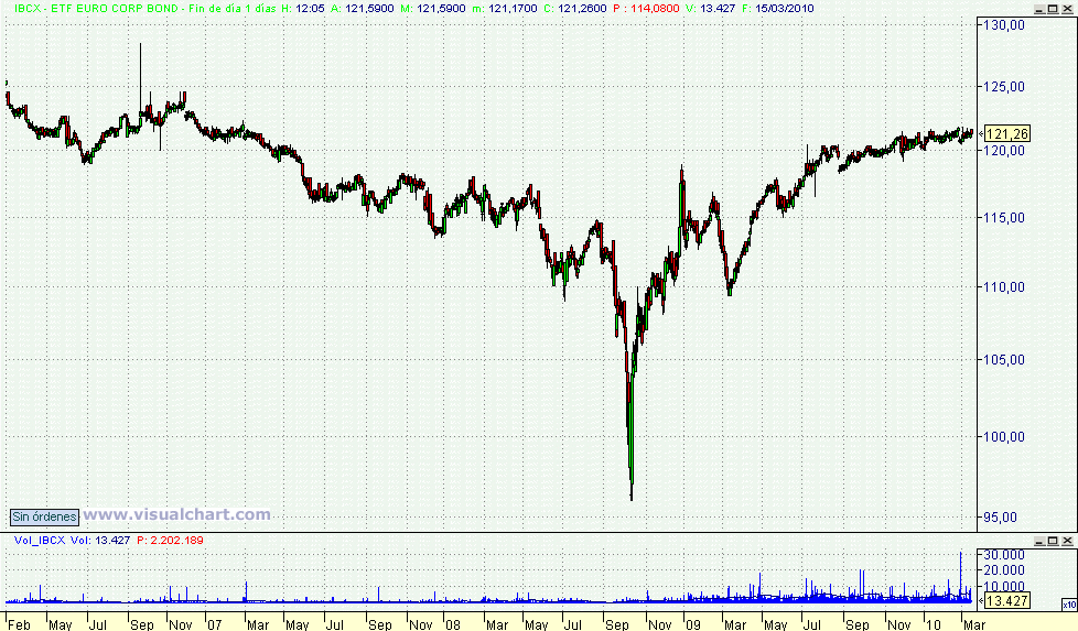 El ETF IBCX tiene en cartera emisiones con una duración media cercana a 4 años y una rentabilidad a vencimiento del 2.97%.