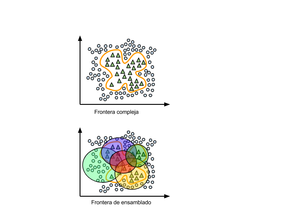 Figura 2. Mediante ensamblado podemos generar fronteras de decisión complejas mediante sistemas muy simples.