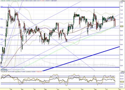 Hoy hemos tenido una sesión complicadilla, los americanos nos están tirando para abajo y no es para menos. Hoy Merril Linch ha anunciado unas pérdidas bastante catastróficas, debido al tema de las subprime que vuelve a estar de moda. Así mismo también han anunciado unos datos de venta de viviendas de segunda mano bastante malillos y como colofón unas reservas de crudo flojillas. Todo esto ha hecho que los mercados corrijan con fuerza.