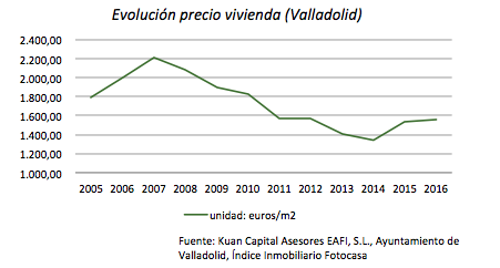 En Valladolid por ejemplo, ciudad donde está radicada nuestra empresa, las transacciones de viviendas en 2015 crecieron un 5,2% frente al 10,6% de la media nacional, este resultado se explica analizando la tipología de inversor en el mercado inmobiliario Vallisoletano, impulsado principalmente por inversión domestica frente a la importante aportación de la demanda extranjera de viviendas en el conjunto nacional. Sin embargo la mejora del consumo y el empleo, así como la fuerte disminución del stock residencial están propiciando un incremento de los precios por metro cuadrado. Esta visión es exportable a otras comunidades de interior donde vemos potencial al mercado inmobiliario.