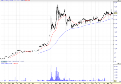 No obstante hay otros valores de corro que han tenido diferente suerte al pasar al continuo os muestro el gráfico uno de ellos, se trata de CLEOP cuya evolución es claramente alcista