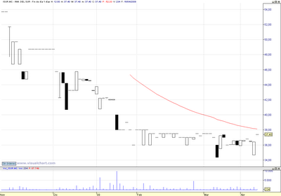 Otro caso que en el futuro quien sabe si podría ser preocupante es el de Inmobiliaria del Sur, desconozco como están sus fundamentales pero por técnico esperemos que no rompa a la baja ya que se podría desatar el Apocalipsis, de casi 60 euros que estaba actualmente está sobre 35 y cotizando actualmente en fixing