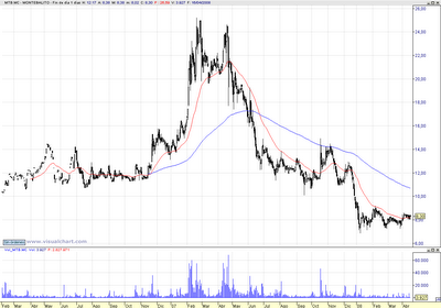 Montebalito otro valor que se metió en el pozo del fixing y que tras un calentón hasta los 25 euros, amenaza con arder en las profundidades, actualmente está sobre los 8 pero a saber cuanto puede caer en el futuro, está cerca de mínimos históricos.