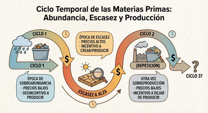 Hay que entender el ciclo: una materia prima puede estar años barata (sobreoferta) o cara (escasez) y pillarla “a destiempo” te puede dejar lateral mucho tiempo.