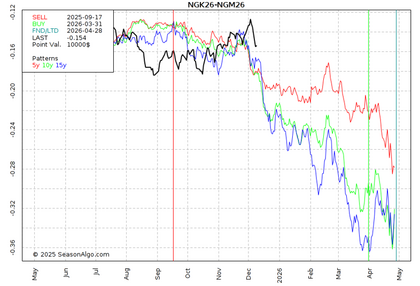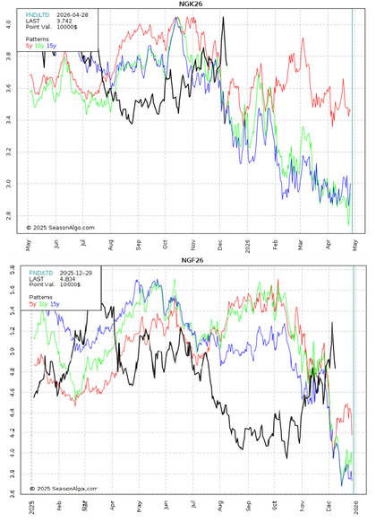 Estacionalidades Futuros Gas Natural (NGK = Mayo, NGF = Enero)