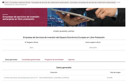 eToro está registrado en la CNMV con número 2534