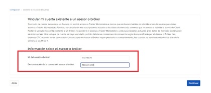 Ahora marca la opción "Vincular mi cuenta con un broker"