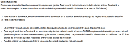 En principio, el programa de Savebacks no suele tener una comisión específica añadida, pero sí estás invirtiendo en productos de mercado (como ETFs) que pueden tener sus propios costes y comisiones. Siempre conviene revisar las condiciones en la app antes de activarlo.