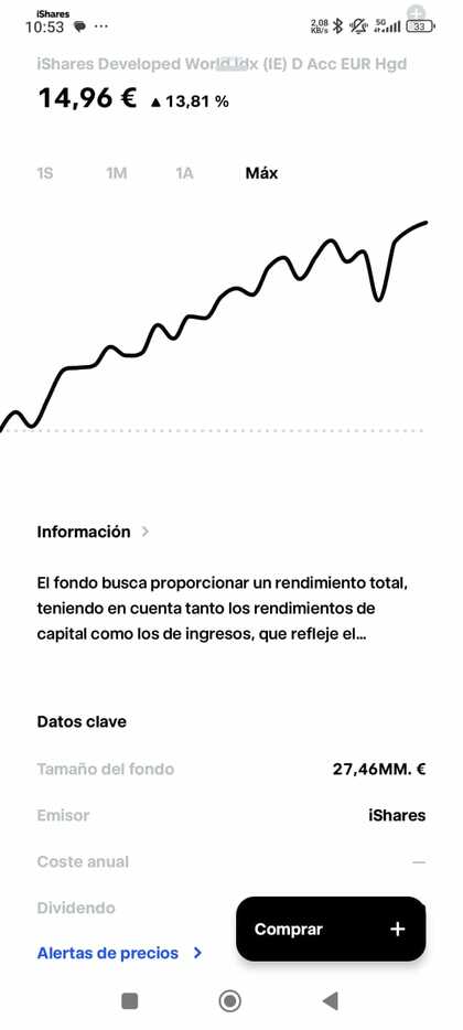 Lo que debes vigilar: de nuevo, al estar ligado al MSCI World, tu cartera queda muy expuesta a Estados Unidos y a los grandes pesos pesados del índice (tecnología, salud, consumo, etc.). Además, como producto 100 % renta variable, puede sufrir caídas significativas en periodos de crisis o recesión. No es un fondo para entrar y salir en pocos meses, sino para un horizonte de varios años, idealmente combinado con una asignación de riesgo que se adapte a tu perfil (más o menos peso en renta fija, liquidez, etc.).