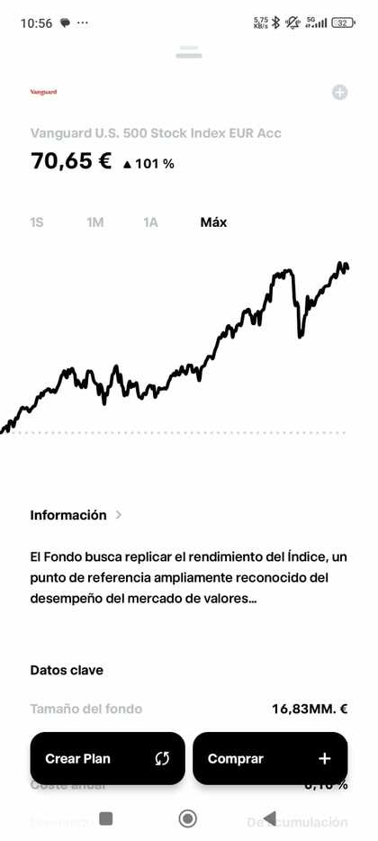 Utiliza el buscador de la app y escribe el nombre del fondo o su ISIN para localizarlo rápidamente. Asegúrate de que se trata de un fondo de inversión (no un ETF) y revisa con calma algunos puntos clave: índice que replica, divisa, clase del fondo (accumulación o distribución) y comisiones que vas a pagar por mantenerlo en cartera.