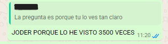 Ante esto, ya es que me ha tocado la fibra y le he contestado en mayúsculas:
