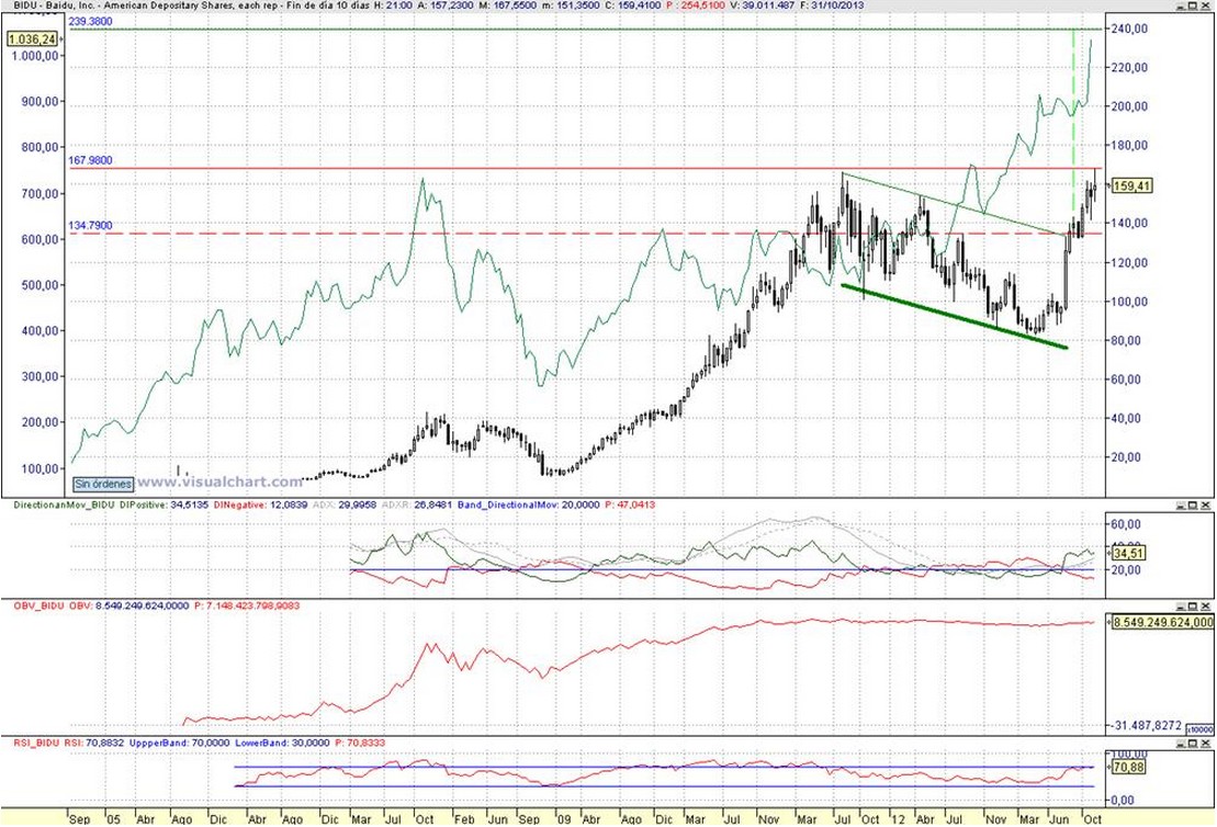 Aconsejamos añadir largos, tras la superación y consolidación de la zona de 168 $ , mantenemos el objetivo pretendido stop de medio y largo plazo, sobre los entornos de 240 $.