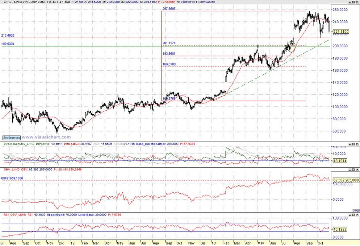 Aconsejaríamos vender tras cierre diario inferior a 213,4 $ con un objetivo pretendido en el rango de 199,5 $ a 185 $. Stop a la recompra con series superiores a 221 $.
