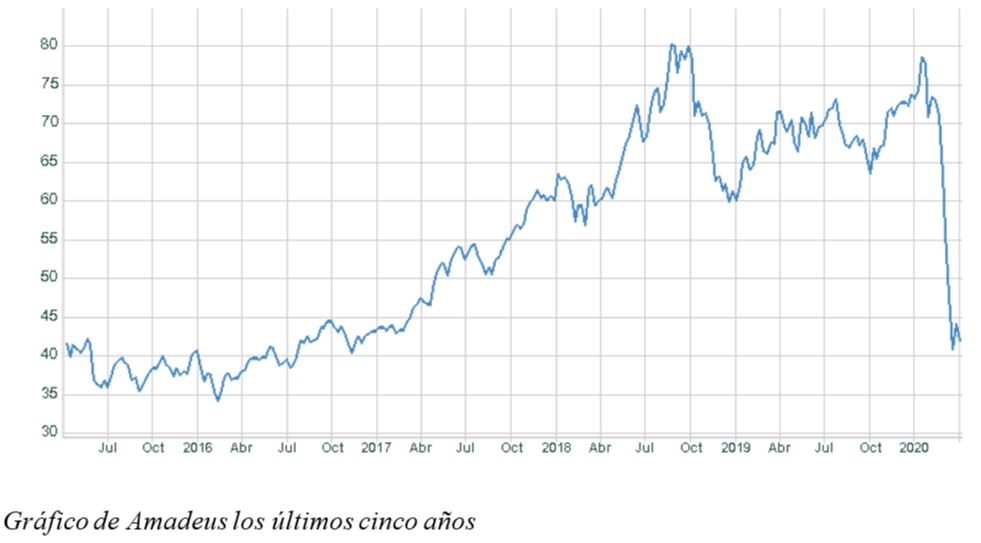 Apostamos por Amadeus a los precios actuales y más aún en caídas que eventualmente pudiesen situar sus acciones por debajo de estos niveles.