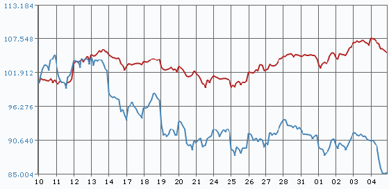 GRÁFICO COMPARATIVO DE BNP Y DEUTSCHE TELEKOM EN EL ÚLTIMO MES:
