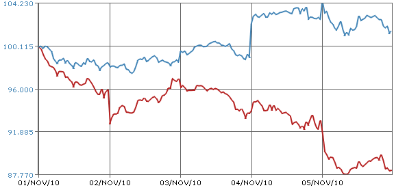 GRÁFICO COMPARATIVO DE BBVA Y BNP LA ÚLTIMA SEMANA