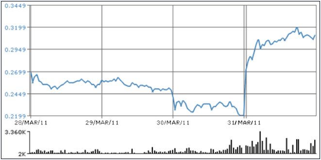 GRÁFICO DEL BANK OF IRELAND LA ÚLTIMA SEMANA: