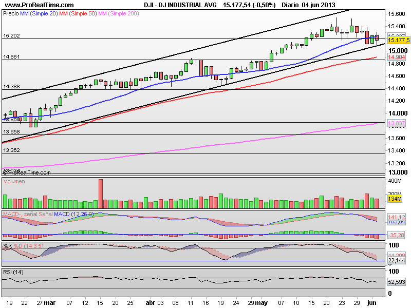 DOW JONES: Quien haya seguido nuestros boletines, y tal como comentábamos en ellos, el Dow Jones se ha venido apoyando justo en la base de la directriz de medio plazo que le ha ayudado a escalar nuevas posiciones alcistas y alcanzar máximos históricos. Ayer se apoyó justamente en dicha directriz para formar una vela , aunque roja, pero con rebote y cola por abajo lo que deja las probabilidades abiertas a que podamos tomar la senda alcista en el mercado americano.