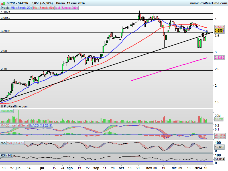 Se pueden tomar posiciones alcistas en el valor con stop por debajo de 3.50 euros y objetivo muy claro en 3.98.