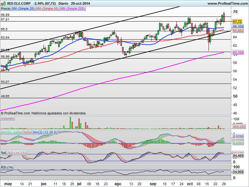 RED ELÉCTRICA: Si seguis nuestros boletines y análisis sabréis que es uno de los valores que tenemos en cartera a día de hoy. El valor mantiene, a día de hoy su estructura tremendamente alcista, es uno de los pocos que ha conseguido aguantar el envite bajista y volátil del propio mercado.