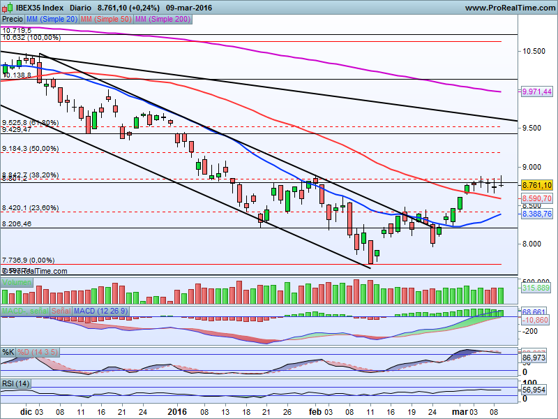 La bolsa espera al BCE en zona de resistencia pero marca un nivel que no debería perderse si los bajistas atacan, y son los 8.600 puntos de Ibex, que coincide con el hueco generado el 1 de Marzo.