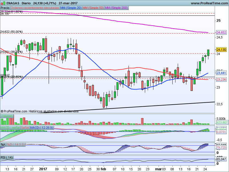 Pues bien, si en breve consiguiéramos situarnos por encima de esta resistencia, el valor generaría su primera señal de compra con objetivos en 24.62 y 25.22 euros, lo que nos daría cierto recorrido potencial aprovechable desde el punto de vista técnico.