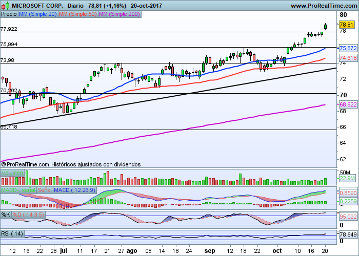 Se podría entrar aprovechando la ruptura de los 78 dólares con stop por debajo de los 75.99 y objetivos en 80 dólares por acción.