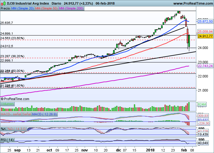 A corto plazo, deberá mantenerse en todo momento por encima de los 23.500 puntos si se quiere que las posibilidades alcistas aumenten. El primer objetivo se sitúa en los 25.500 y el segundo en los 26.500 enteros (máximos anuales). Mejora de su aspecto técnico pero no ausente de la temida volatilidad, con un VIX del miedo que todavía mantiene turbulencias.