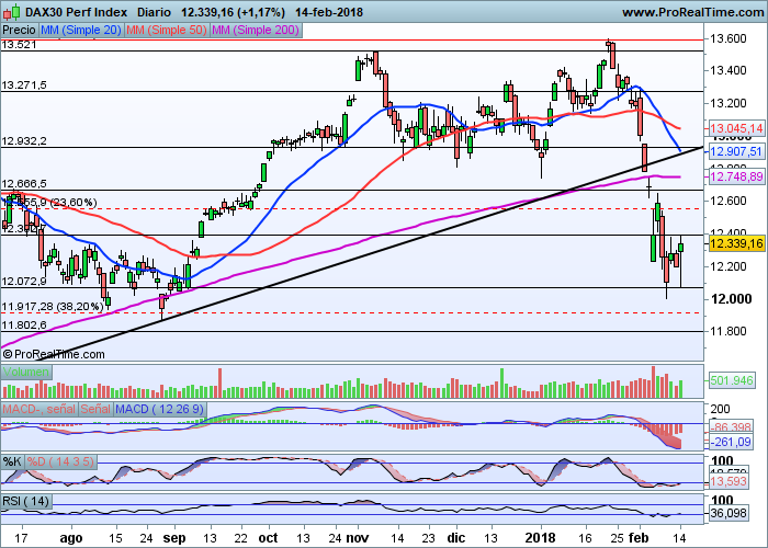 Por debajo de los 12.000 puntos se abriría un nuevo proceso bajista, pero es un escenario al que damos muy poca probabilidad. Para nosotros es mucho más probable un intento de recuperación que seguir con mayores caídas, al menos en el Dax.