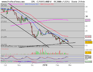 Cementos Portland: La media de 20 nos está jugando una mala pasada. Llevamos 2 sesiones topándonos con ella. Esperamos subidas para los próximos dias, y cualquier recorte en el valor es una oportunidad para poder entrar. Tenemos un suelo en los 18 euros que coincide con el nivel psicológico, puede tardar algo más la subida que en Natra , pero vendrá, ya lo veréis.