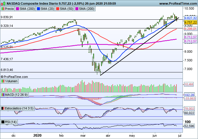 Por su parte, tanto el Nasdaq100 como el Composite también están encontrando dificultades para seguir subiendo y en concreto superar la zona de los 10.000 puntos donde han creado cierta resistencia técnica, además de ser un nivel psicológico importante a tener en cuenta. Es normal que la primera vez que se busque superar una resistencia no se pueda con ella, pero ahora ya se ha efectuado el correspondiente pull-back hacia el soporte de los 9.800 puntos, y en las próximas horas ambos índices deberían volver a intentarlo.