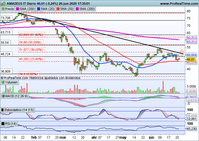Por tanto, Amadeus es un valor para tener en cartera ahora mismo con buenas expectativas y caso de no tenerlo, apto para entrar solamente con precios de cierre por encima de 50.60 euros (50.50 con un pequeño filtro). Stop de protección, por debajo de 45 euros también en cierres.