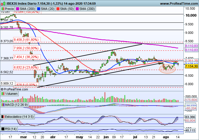 Los volúmenes, tal y como estaba previsto durante este mes de agosto, se han reducido considerablemente, lo cual dificulta el rebote y facilita la apertura de posiciones cortas por parte de los especuladores.