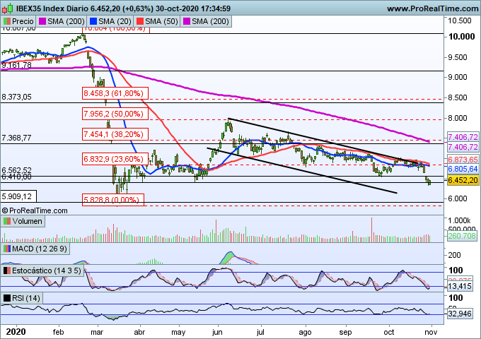 La nueva ola de confinamientos ha dado un vuelco a las previsiones económicas para el cuarto trimestre del año. La marcha atrás en la recuperación desata una continua rebaja de estimaciones. Ante este escenario de mercado, vamos a analizar los distintos índices y proporcionaros algunas oportunidades, que, bajo el punto de vista técnico, podrían dar opciones a corto plazo.