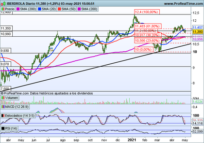 En cualquier caso, si queremos entrar compradores en este momento buscando objetivos en 11,70 nuevamente, deberíamos situar un stop de protección por debajo de 11,02 euros.